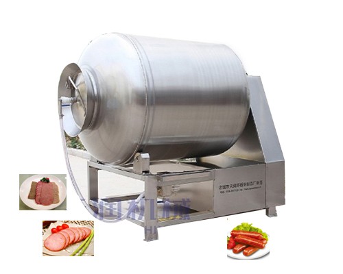 是在真空状态下,利用物理冲击的原理,让肉类在滚筒内上下翻动,相互撞击,摔打,达到按摩的效果,肉类原料在真空状态负压下,最大程度被拉伸,使腌制料液均匀快速渗透到内部,高效腌制原料的专业设备。